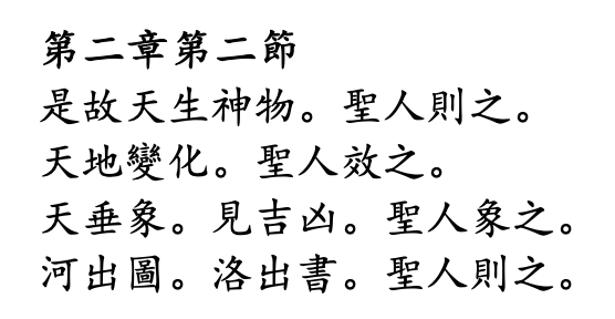 是故易有太極。是生兩儀。兩儀生四象。四象生八卦。